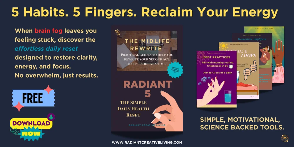 Get the Radiant 5 Toolkit: a ready-to-use suite of printable trackers, reflection journals, cheat sheets, and a quick-start video guide, plus ONE WEEK of chatting with GLORIA VIP. Perfect for daily momentum, habit resets, and staying motivated even on tough days. Track your wins, build lasting habits, and feel more Radiant—every single day!
